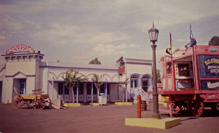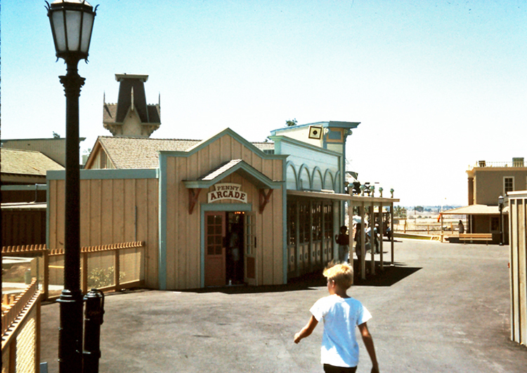 Kapp's Penny Arcade was located in the heart of the Gay '90s section of Legend City near the park entrance and originally featured old-time amusements such as kinetoscopes, pinball, fortune-telling machines and other assorted mechanical diversions. As with many of the buildings at Legend City, the arcade went through a steady evolution in both use and appearance over the years.