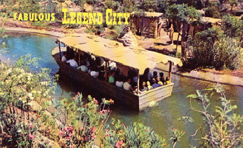 The scouting boat floats quietly past the Indian Village in this early postcard.