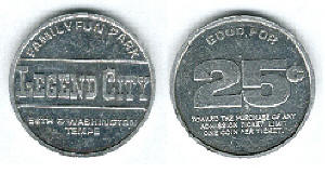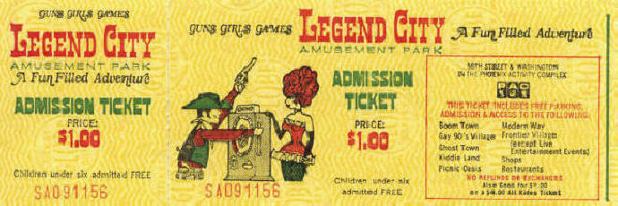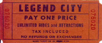 Memorabilia A selection of priceless souvenirs and other odds and ends from twenty years of Legend City history. (Click on items for a closer view and description)